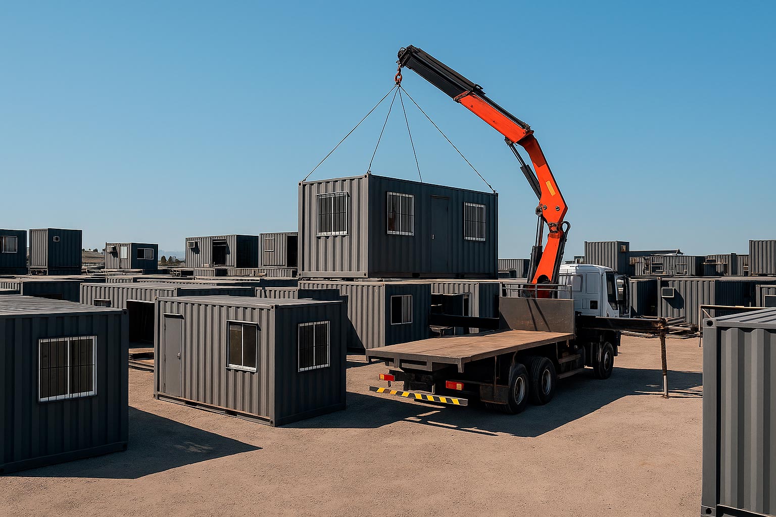 Con nuestra flota propia de camiones pluma, cambiar un baño por una oficina o una bodega por un comedor es tan simple como avisarnos. Adaptamos los módulos a medida de cada etapa de tu proyecto y los movilizamos donde los necesites, sin complicaciones ni esperas. Porque en Andes Containers, tu espacio se adapta a ti.
