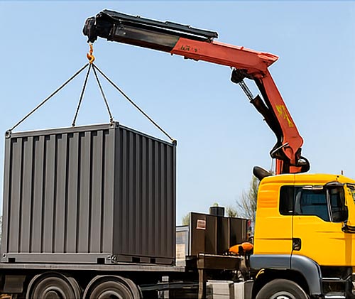 Contamos con uestra propia flota de camiones pluma para instalación y movimiento rápido de contenedores.