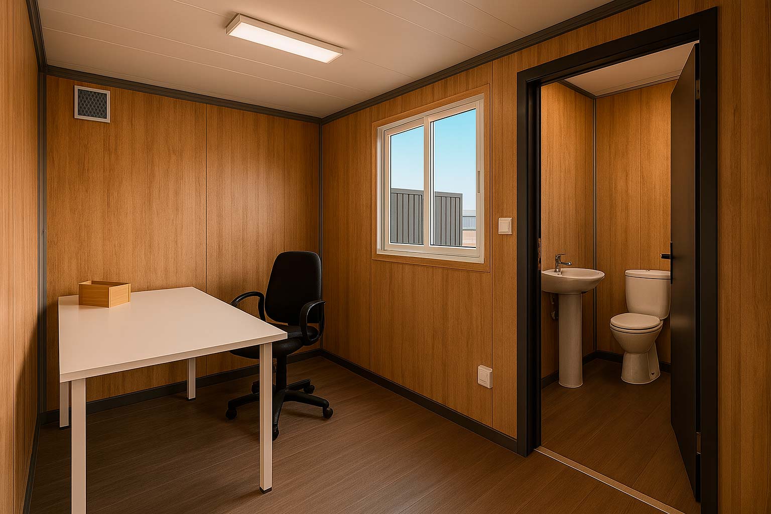 Nuestras oficinas están construidas con contenedores de alto estándar, listas para instalar en faenas, obras o cualquier tipo de proyecto temporal o permanente. Aisladas térmica y acústicamente, con ventilación, electricidad y terminaciones profesionales.